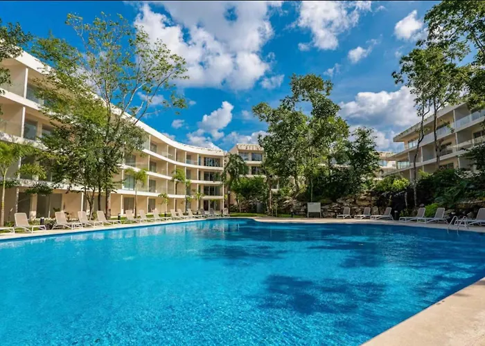 Enhance your stay with Beach Haus - Playacar The Leaf 16's a fully equipped kitchen, furnished with a fridge and glassware for your comfort. The apartment is in proximity to Playa del Carmen - Tulum bus station. The apartment has a terrace equipped with a swimming pool.